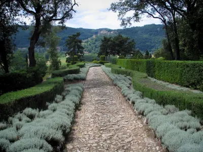 Этот участок с видом на реку Дордонь порадует колясок своими расслабляющими и ароматными дорожками, резными самшитами и бельведером, из которого открывается великолепный вид на долину Дордонь и очаровательную деревню Ля Рок-Гаджак.