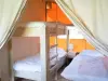 The chalet and mobile homes have a terrace looking onto the countryside, a fully-equipped kitchen, and a private bathroom.