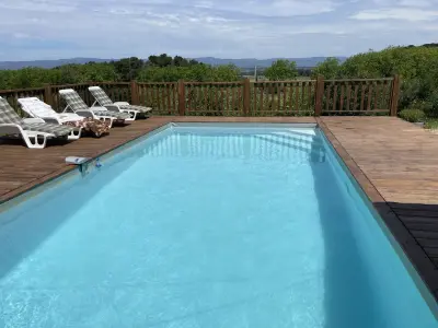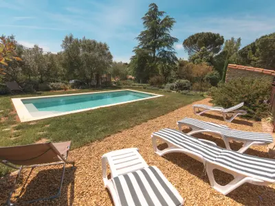 位于 Douzens(11700)镇这个庄园,由一个舒适的别墅和一个独立的带家具的工作室组成,位于"Corbières"葡萄园的美丽丘陵景观中。 这个宁静的地方激发了平静和安宁。 没有任何相对,这个地中海和平的避风港是一个特权的度假胜地。 空调别墅由2间卧室和1间浴室组成,厨房/餐厅通向客厅,俯瞰朝东的露台,非常适合在阳光下享用早餐。 设备齐全(厨房–卫生间-淋浴)和空调一室公寓位于别墅后面20米处,可直接通往温水游泳池。 周围,一个大型现代化露台配有日光浴,提供葡萄园的壮丽景色,邀请您品尝一杯…