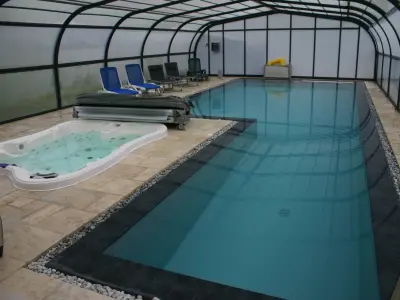 Moulin De Maulne共有11间客房:9间双人房,2间家庭房(睡4间和4间),2间工作室,7间浴室,2间接待室:一间餐厅(大约)。 55平方米,可舒适地容纳多达30位客人)和一间起居室(约300米)。 50平方米),一个大型设备齐全的厨房。 住宿由主体部分和两个工作室组成,都是同一栋建筑的一部分。 两个工作室都有独立的外部通道. 该建筑周围有4个庭院和一个带户外家具的大型围墙露台,配有自动遮阳篷(5x3m)和灯具。 室外区域包括游泳池,烧烤区/夏季厨房,游戏区,地窖,观赏花园,大型绿地…