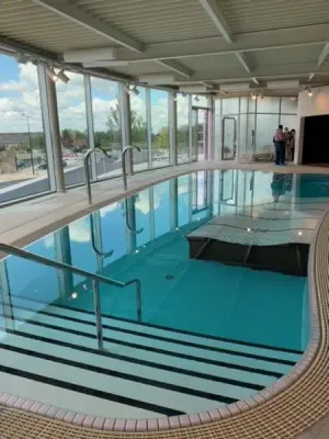 露营地设有温水游泳池,嬉水池,免费钓鱼池,酒吧/小吃店,整个露营地的无线网络连接和私人停车场。 行动不便的人可以使用它。