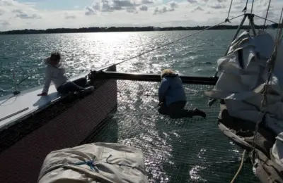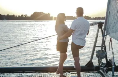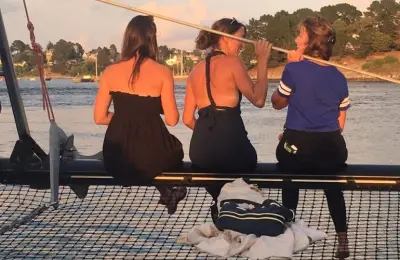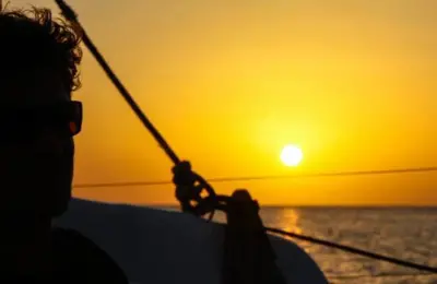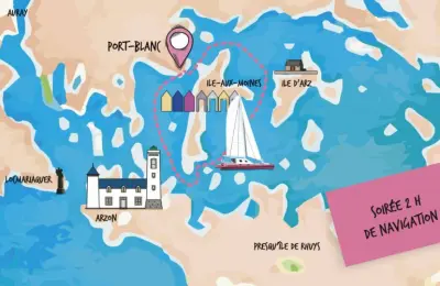 Embark on a sunset catamaran cruise in the Gulf of Morbihan and admire its islands during Golden Hour ! Sunset is always a magical moment of the day, but if there's one thing that makes it even more special, it's admiring it from the sea ! With this catamaran cruise in the Gulf of Morbihan at the end of the day, that's exactly what you can expect ! Bounded by the Rhuys peninsula, the Golfe du Morbihan is like an inland sea, with only a narrow passage connecting it to the vast ocean. Covering an area of more than 10,000 ha, this gulf of southern Brittany is home to a whole constellation of islands and islets, which you are invited to discover on this catamaran trip. Departing from Port-Blanc, you'll embark at the end of the day, accompanied by a skipper and his crew. With a drink in hand, you'll admire these magnificent seascapes, enhanced by the changing colors of the early evening. During your 2-hour sail, you'll discover the main islands of the Golfe du Morbihan, such as l'île d'Arz or l'île aux Moines, also known as the "pearl of the Golfe", as well as numerous islets, most of which are uninhabited. Along the way, you'll discover a veritable labyrinth of land and sea. You'll share a glass of planteur or ti-punch, as well as toast with family and friends, for a convivial moment at sea ! This catamaran cruise in Brittany is the ideal opportunity to visit the Gulf of Morbihan while enjoying the journey. You'll sail on a comfortable, secure maxi catamaran that moves very little. A maxi catamaran cruise in the Morbihan is the perfect way to enjoy an unusual sunset ! So don't hesitate, book this activity and experience an unforgettable moment in Brittany ! Departures are mainly from Port-Blanc, with the other ports (Quiberon and Trinité-Sur-Mer) served only in July and August.
