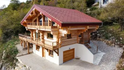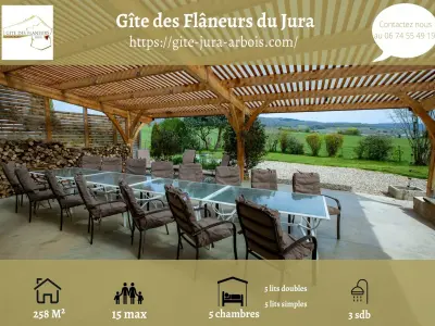 En el lago Chalain, cabaña, 4 * 105 m² con sauna, gran confort, capacidad para 5 personas en un bello entorno natural, vistas al bosque, cerca de cascadas Herisson, a distancia Baume les Messieurs, viñedos Arbois, Pic de l Eagle, a 100 km al…