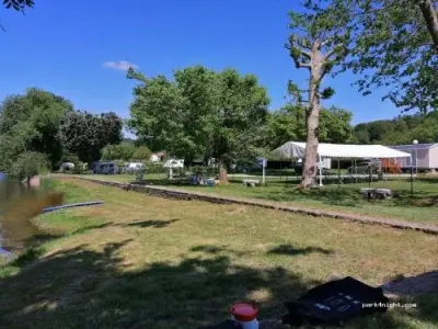 Bordeado por el río, es ideal para los amantes del relax y la pesca. Se cuenta con 40 lugares, 2 casas móviles, parque infantil, una bolera, alquiler de botes de pedal, aseos y una lavadora. Cerca hay canchas de tenis, Paseos en coche de caballos,…