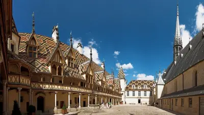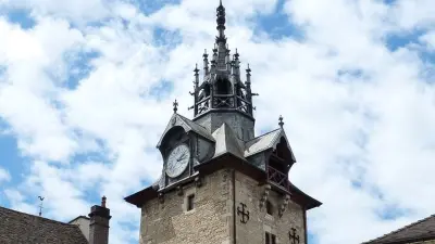 La iglesia de San Nicolás de Beaune es especialmente conocida por su pórtico decorado con quimeras y por su campanario con chapitel de toba del siglo XV.