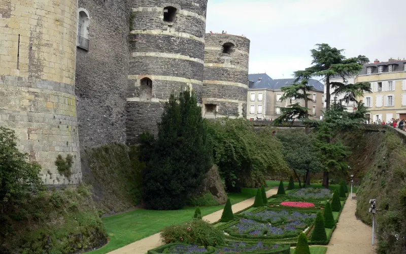 Recorridos por el castillo (casas de fortaleza medieval del museo de tapices), jardín (flores, arbustos recortados), los árboles y los edificios de la ciudad