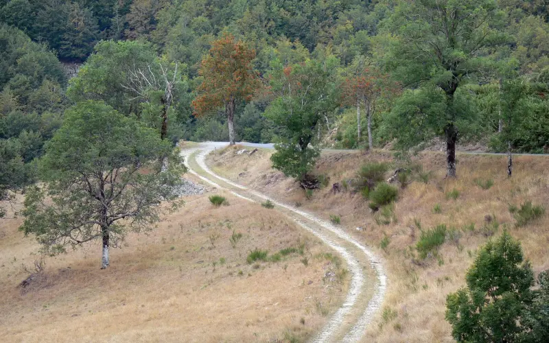 Aigoual Massiv - Waldweg gesäumt von Bäumen; im Nationalpark der Cevennen (Cevennen-Massiv)