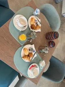 A selection of options including fresh pastries and juice is served for the continental breakfast. There is a coffee shop, bar and lounge.