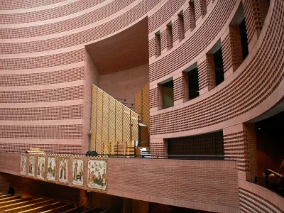 Sa cathédrale moderne est surmontée d'un toit couronné de tilleuls