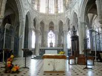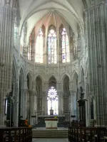 Une fois à l'intérieur, l'on découvre tour à tour son imposante nef romane, son chœur gothique, ainsi que sa superbe chapelle Saint-Crespin du XIIe siècle. Cette dernière abrite en ses murs quatre tapisseries d'Aubusson du XVIIe siècle représentant des scènes de l'Ancien Testament, une peinture murale du Christ en Majesté, des statues de saints, et surtout la pièce maîtresse de la basilique : la magnifique statue de Notre-Dame de l'Épine, en chêne, parée de lames d'argent, datée du XIIIe siècle.