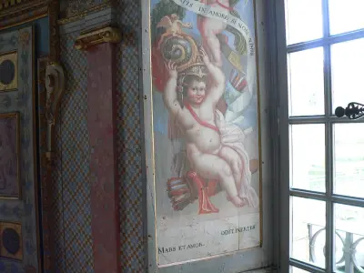 À l'intérieur, les salles sont richement décorées de peintures et de tableaux. Trois pièces se démarquent particulièrement : la salle des Devises, la chambre de Bussy et le somptueux cabinet de la tour Dorée où de nombreuses peintures et portraits recouvrent les murs !