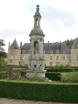 Mais le charme du lieu opère aussi grâce au très beau jardin à la française. Ponctué de fontaines, de pièces d'eau, de parterres de buis, de cabinets de verdure et de bosquets délimités par des allées en étoile, il est classé Jardin Remarquable. Le doux parfum des variétés anciennes de rosiers viendra certainement titiller vos narines. Un rucher, un colombier, un verger et un potager, où sont cultivés des légumes anciens, ainsi que des statues représentant des personnages mythologiques, finissent de composer ce merveilleux ensemble.