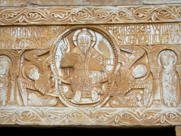 Romanesque lintel of the Saint-Michel church: Christ in Majesty